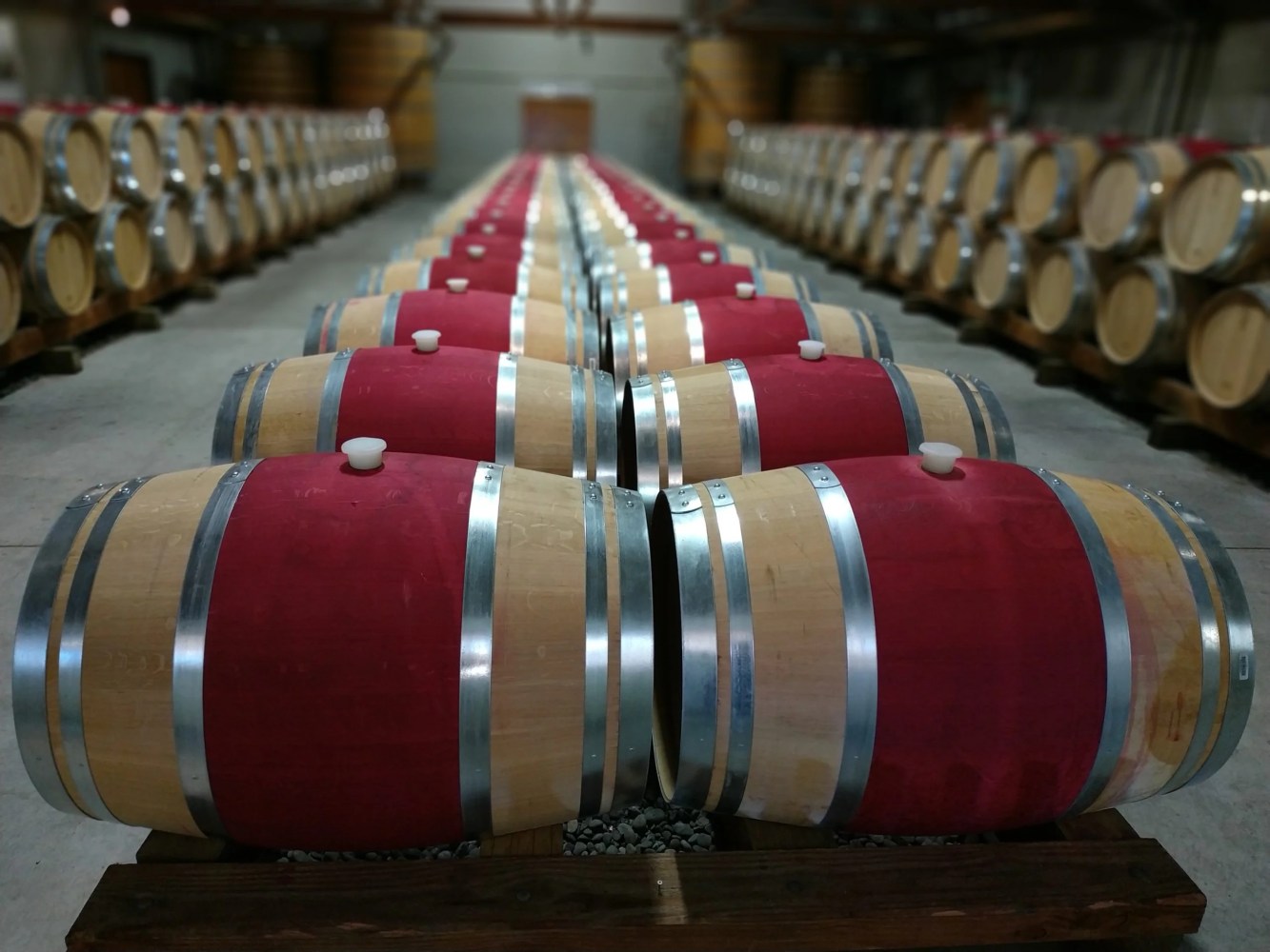 Pinot Noir Barrel room seen through the glass in the Cloudy Bay Cellar door, on our Marlborough Wine Tour.