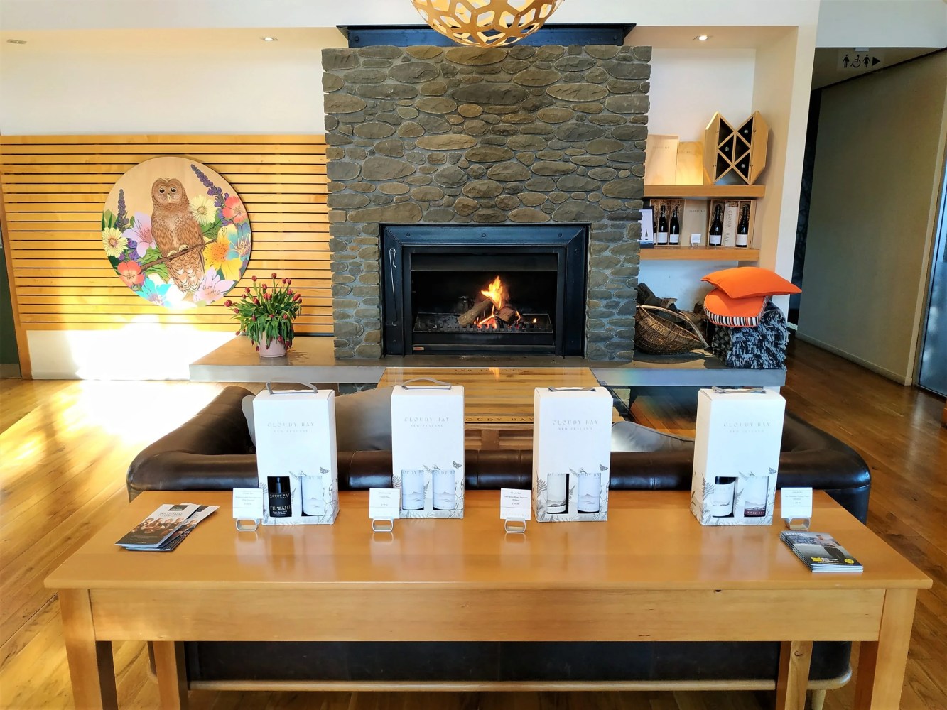 Inside the Marlborough cellar door in winter. A lovely warm fire to welcome guests.