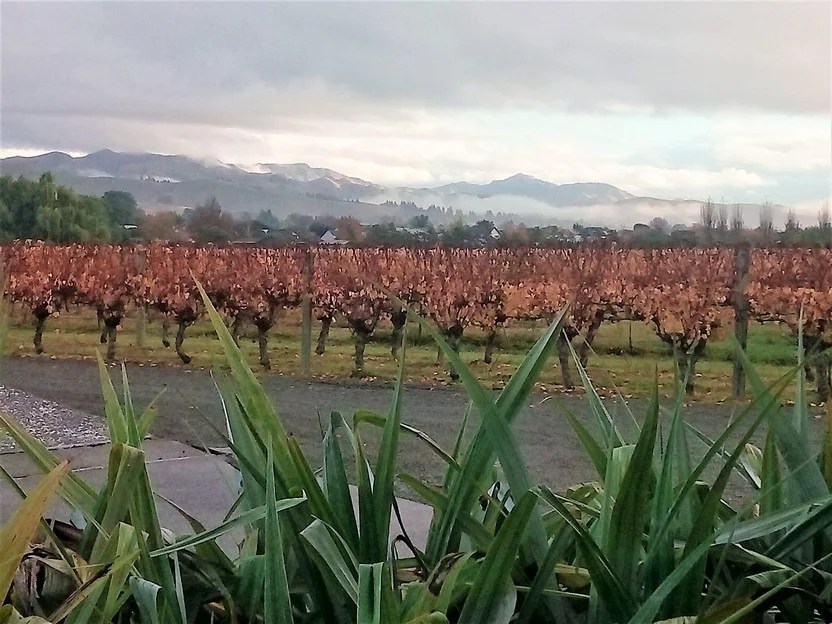 A view of the vines in the Brancott Valley on the south side of the main Wairau Valley. One of the thousands of vineyards that need pruning, therefore we need many workers.