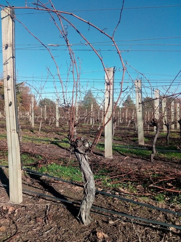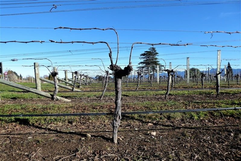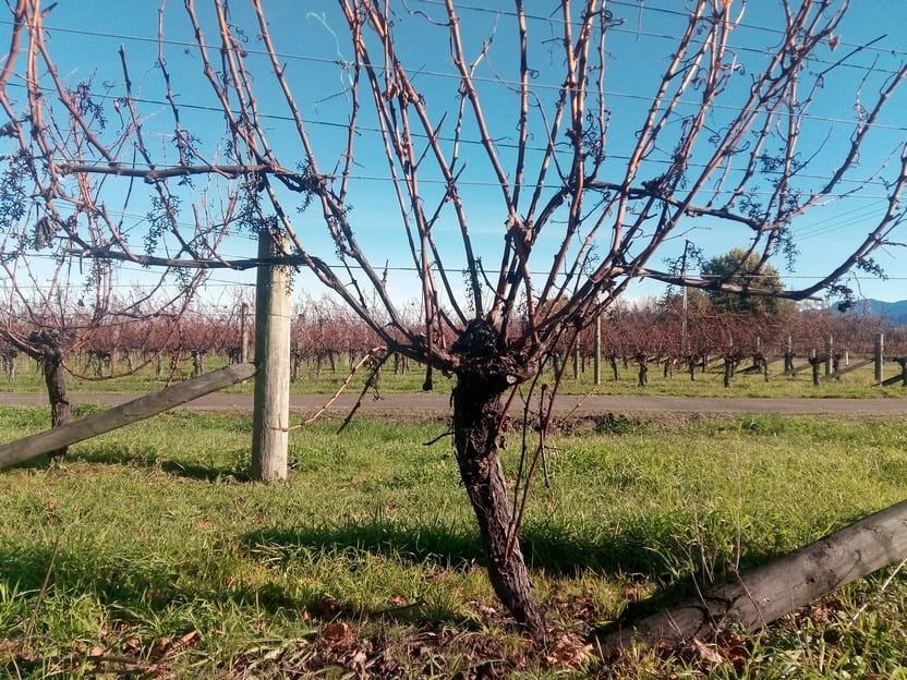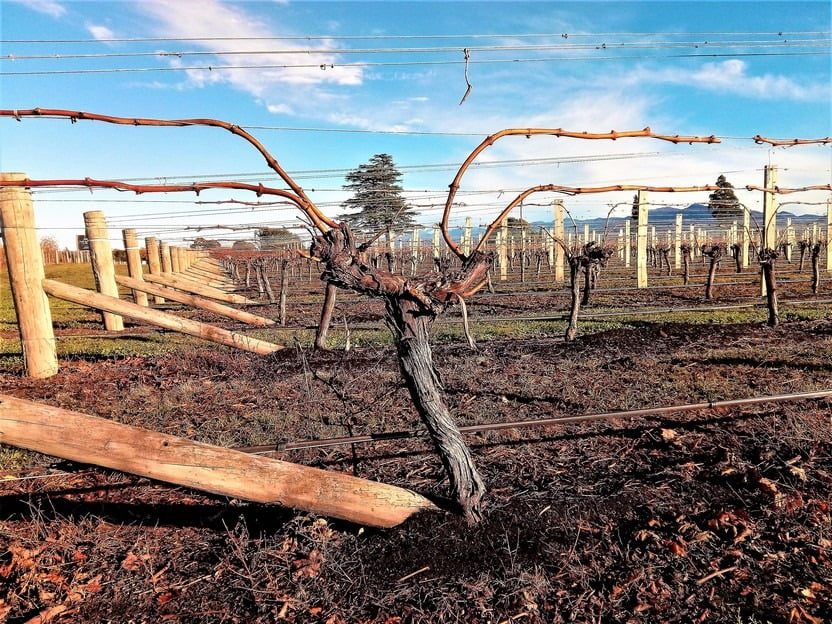 A vine after the old wood has been stripped. Once stripped the pruners return to the vines to finish the job