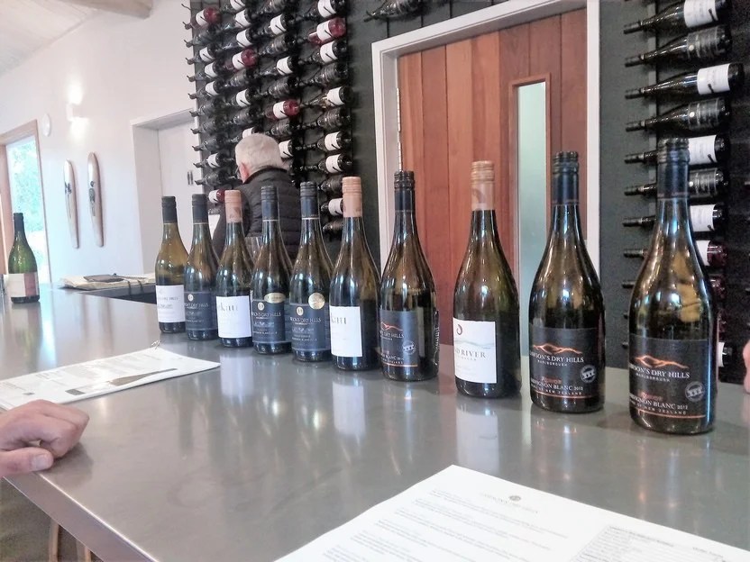 Many Lawsons Dry Hills vintages and labels during a wine tour